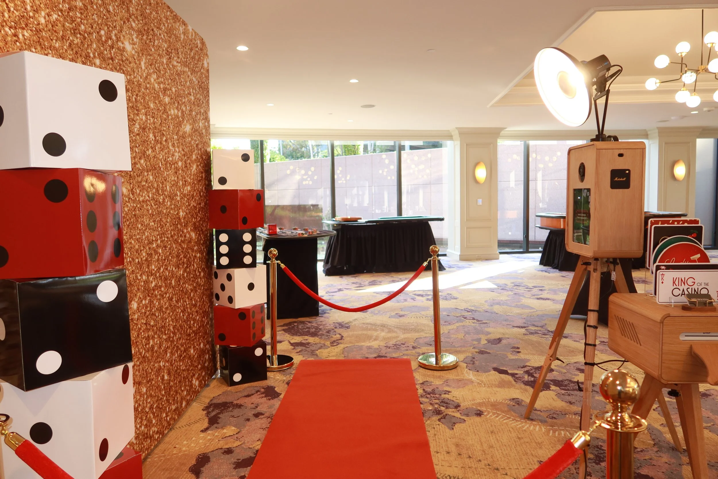 We brought the fun with the Oak Booth, complete with a gold sparkle backdrop and custom 2x6 photo strips that fit the theme perfectly. From glam poses to playful group shots, guests embraced the casino vibes in style — creating memories as bold and vibrant as the night itself. It was an evening full of laughter, high energy, and snapshots that brought the celebration to life!