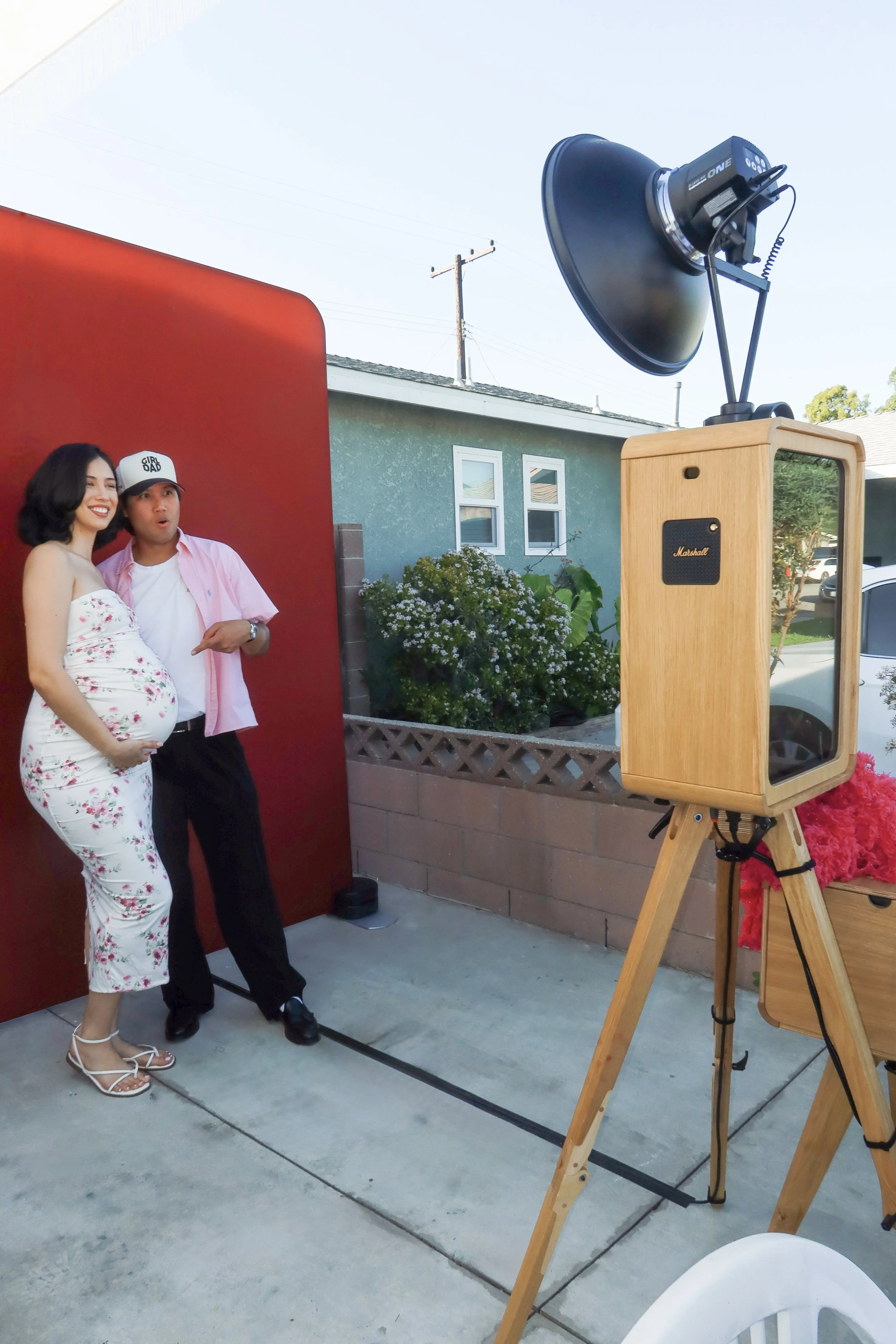 For this baby shower, we featured our signature Oak Booth paired with our bold red Crimson backdrop, creating a striking yet timeless look. Guests enjoyed high-quality 2×6 photo prints with a custom photo template designed exclusively for the event, giving everyone a sweet keepsake to take home. From the natural wood finish of the Oak Booth to the romantic Valentine-inspired setup, every detail came together beautifully, making this Costa Mesa baby shower both memorable and full of love.